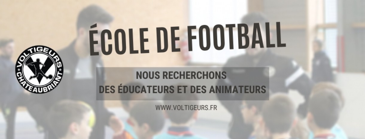 L'école de football recherche des personnes pour l'encadrement du mercredi et du samedi dans les catégories U6 à U9 et U10-U11. Nous recherchons des personnes diplômées ou des personnes qui ont envie de s'investir et de se former. La porte est ouverte à tout le monde alors contact nous.