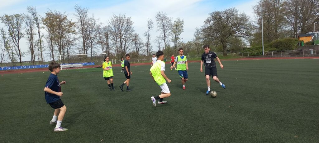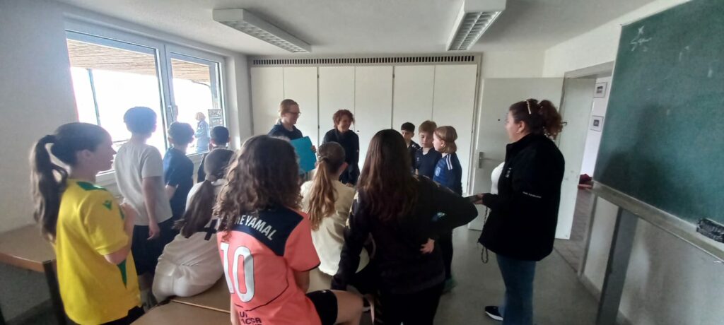 Les jeunes ont ensuite eu quartier libre . L'après-midi, après les déjeuner les jeunes ont été répartis en équipe et ont pu jouer au foot et participer à des jeux linguistiques.