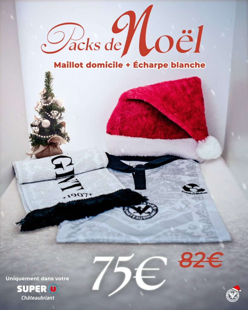 À l’occasion des fêtes de fin d’année nous proposons deux Packs de Noël exclusifs, disponibles uniquement dans la boutique officielle située au Super U de Châteaubriant.