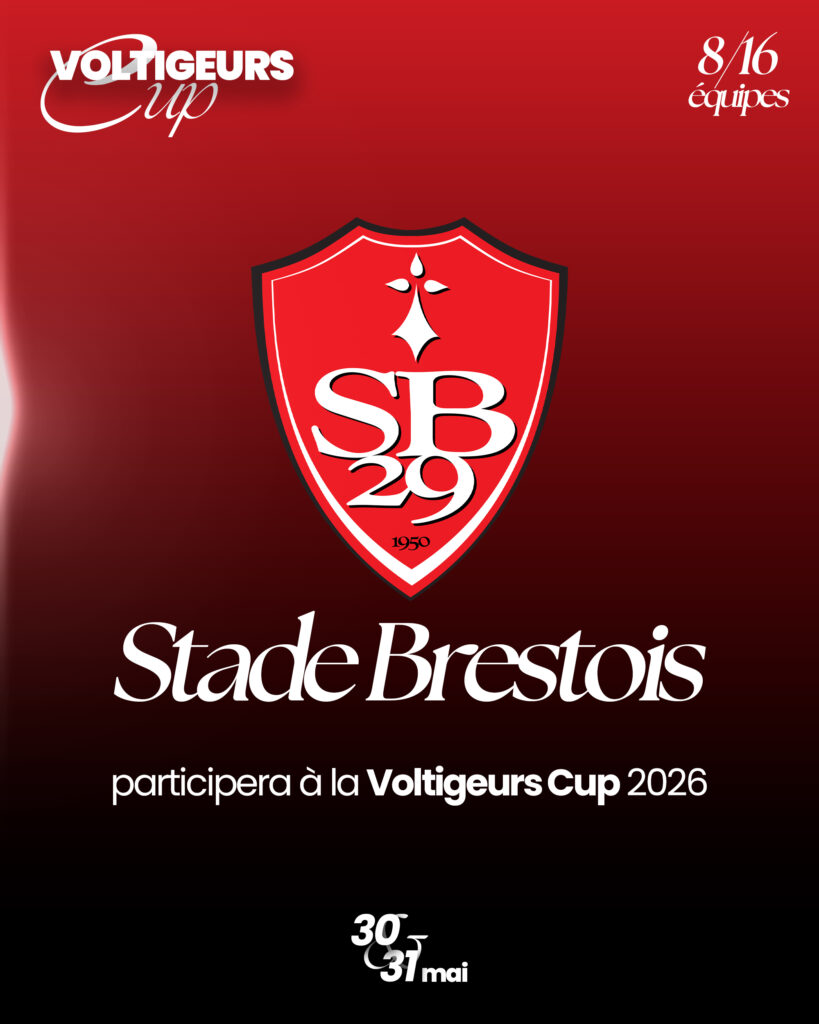 Le Stade Brestois et l'USSA Vertou participeront à la première édition de la Voltigeurs CUP qui se tiendra pour rappel les 30 et 31 mai 2026 au Stade de la Ville en Bois !